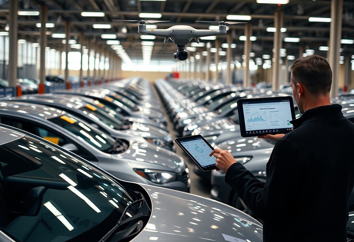 AI optimizes pick-up, reconditioning and transport by combining telematics, depot capacity and demand forecasts: route optimization lowers transit miles and fuel spend, mobile computer-vision inspections flag damage with up to ~90% precision, and automated reconditioning queues can shave turnaround time by about 30%, letting you process higher volumes with the same staff.