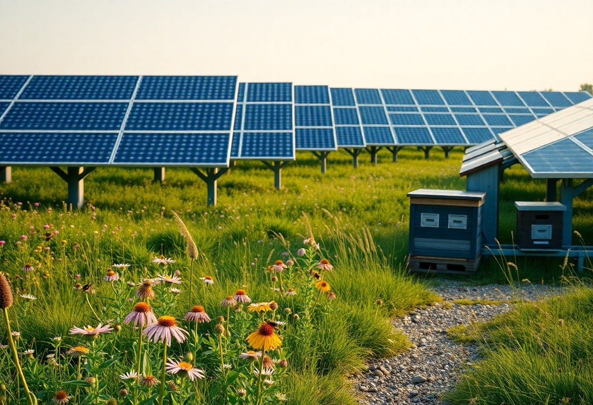 Solar arrays over pollinator habitat create cooler microclimates and reduce dust, and you support pollinators by choosing low-growing cover that limits shading; this synergy raises panel efficiency while restoring foraging resources and improving site resilience.